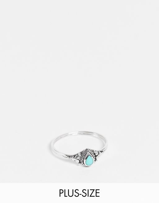 Kingsley Ryan Curve - Anello in argento sterling con incisioni e pietra turchese