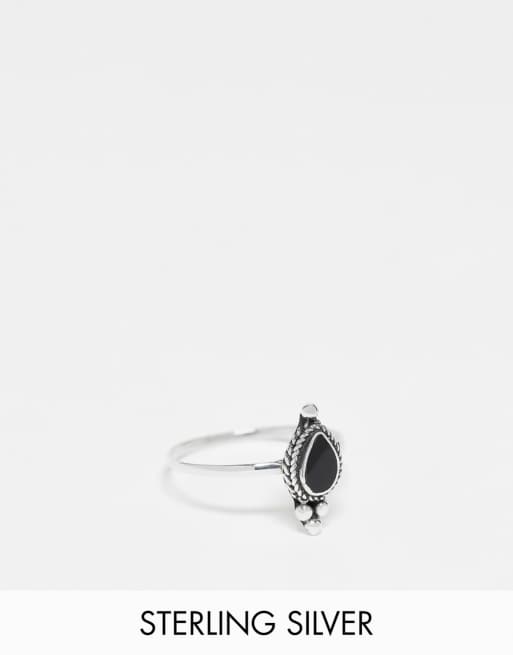 Kingsley Ryan - Anello in argento sterling con pietra nera