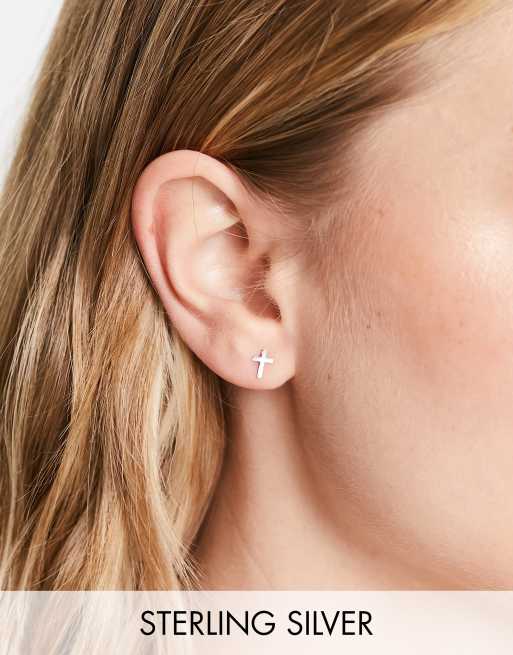 Kingsley Ryan - Orecchini a bottone a croce in argento sterling