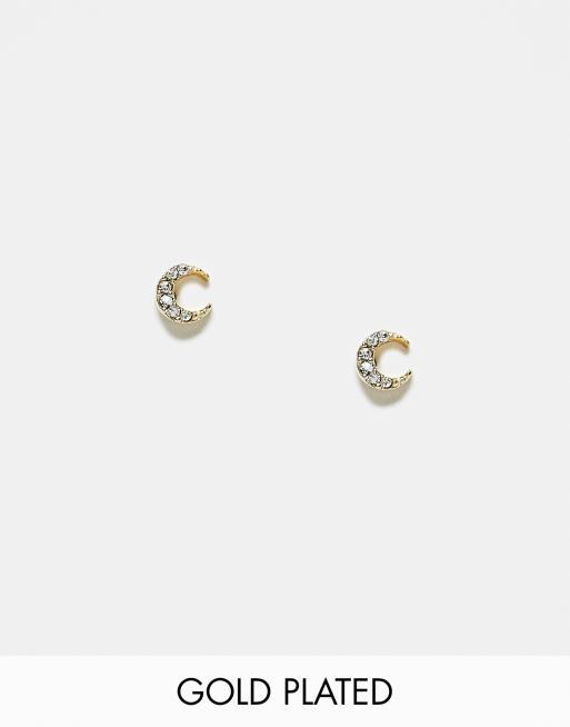 Kingsley Ryan - Orecchini a bottone a mezza luna placcati oro con pietre