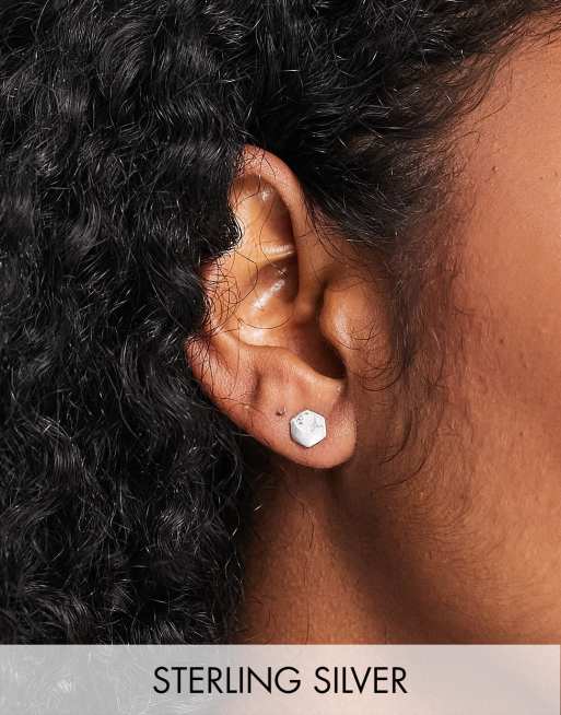 Kingsley Ryan - Orecchini a bottone esagonali in argento sterling con pietra howlite