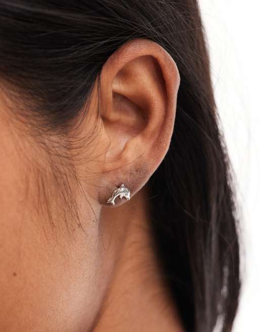 Kingsley Ryan - Orecchini a bottone in argento sterling a forma di delfino