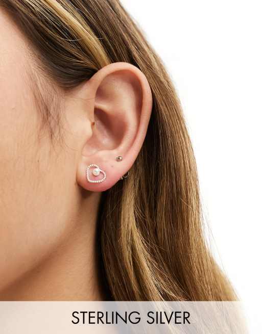 Kingsley Ryan - Orecchini a bottone in argento sterling con cuore e perla