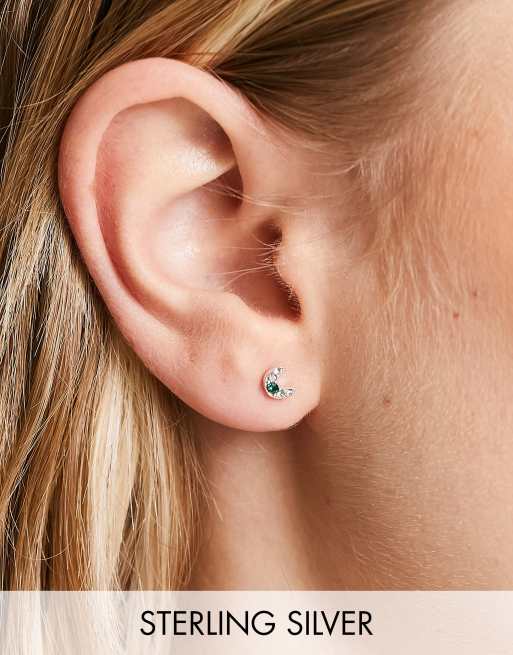 Kingsley Ryan - Orecchini a bottone in argento sterling con luna crescente e gemme multiple
