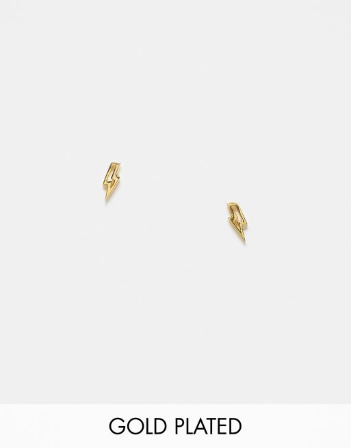 Kingsley Ryan - Orecchini a bottone placcati oro con design cut-out a forma di fulmine