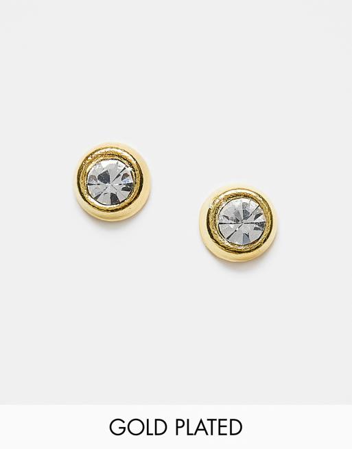 Kingsley Ryan - Orecchini a bottone rotondi da 4 mm placcati in oro con gemme