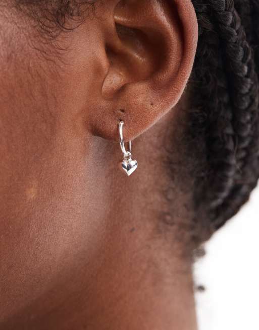 Kingsley Ryan - Orecchini a cerchio da 12 mm in argento sterling con ciondolo a cuore