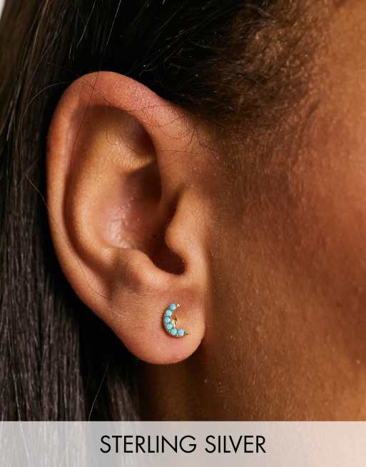 Kingsley Ryan - Orecchini in argento sterling placcato oro con luna crescente e gemme turchesi