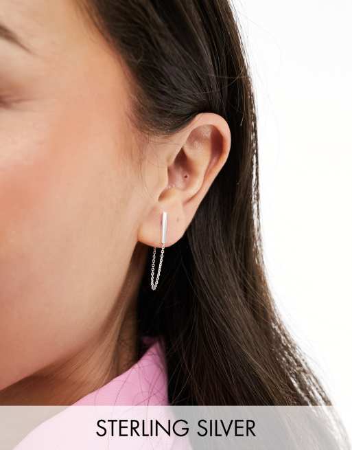 Kingsley Ryan - Orecchino a bottone in argento sterling con catenina e barretta