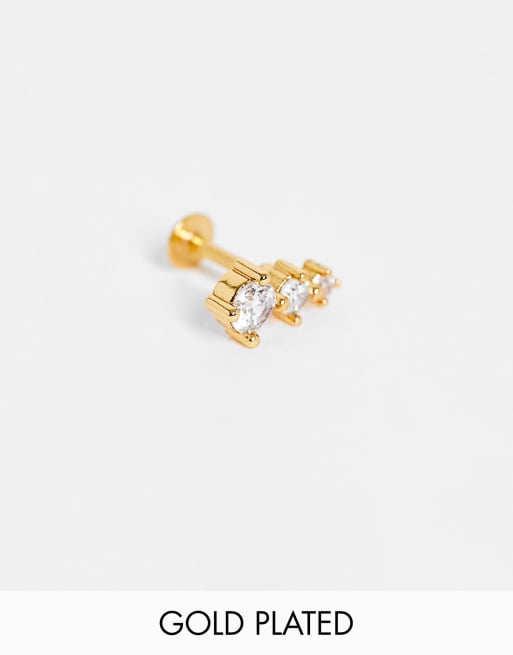 Kingsley Ryan - Orecchino da piercing micro placcato oro con tre strass