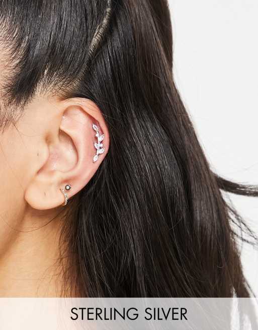 Kingsley Ryan - Orecchino piercing singolo modello ear cuff in argento sterling con fiore