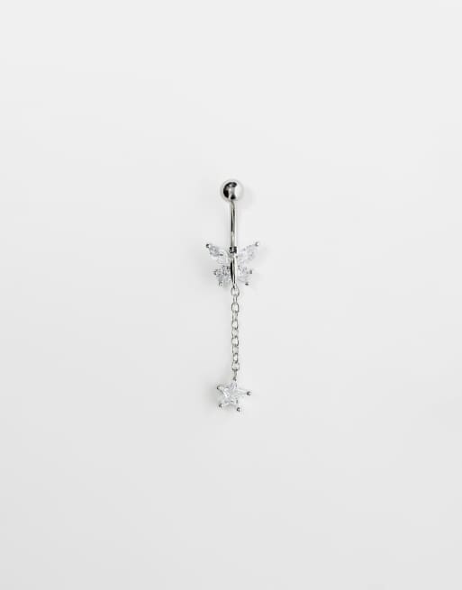 Kingsley Ryan - Piercing per ombelico con barretta in argento sterling a forma di farfalla con cristallo