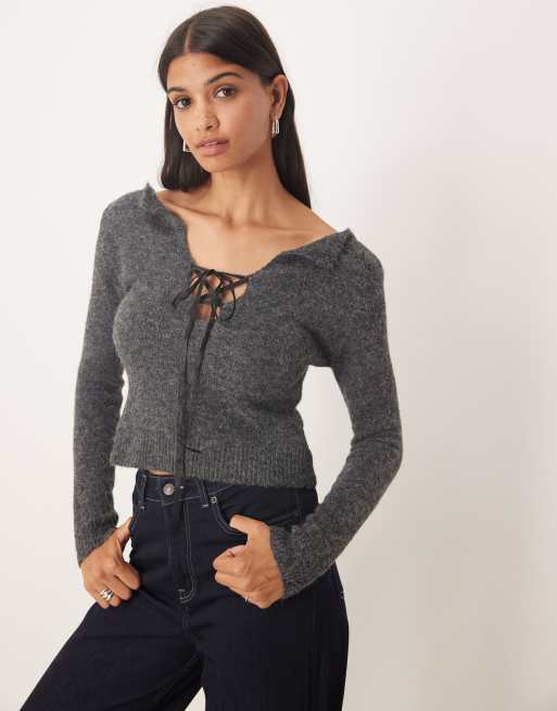 Kiss The Sky - Maglione color antracite a maniche lunghe allacciato sul davanti