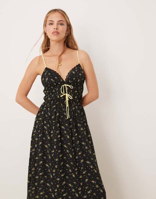 Kiss The Sky - Vestito lungo senza maniche nero a fiori con scollo a V