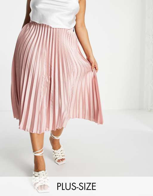 Koco & K Plus - Gonna midi a pieghe in raso rosa