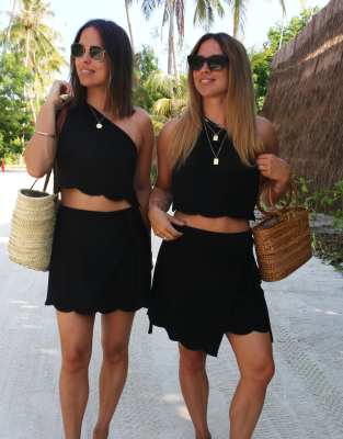 Labelrail x Collyer Twins - Minigonna asimmetrica avvolgente nera in lino con orlo smerlato in coordinato