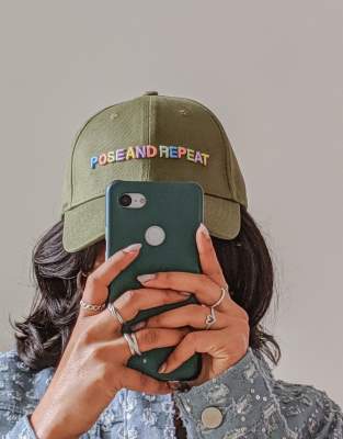 Labelrail x Pose and Repeat - Cappellino kaki con logo in colori arcobaleno pastello