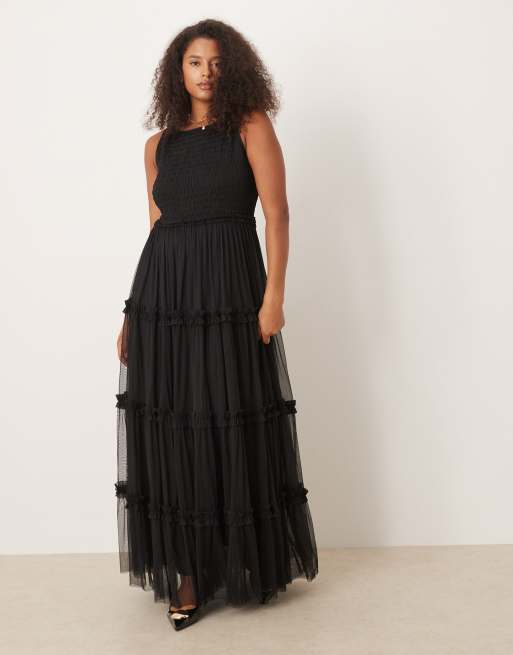 Lace & Beads Plus - Vestito lungo arricciato nero