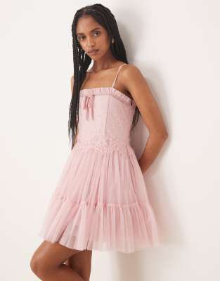 Lace & Beads - Vestito corto in tulle rosa pastello con corsetto in pizzo