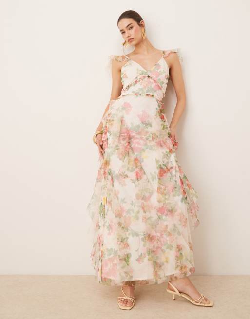 Lace & Beads - Vestito in tulle a fiori vivace con gonna al polpaccio e volant