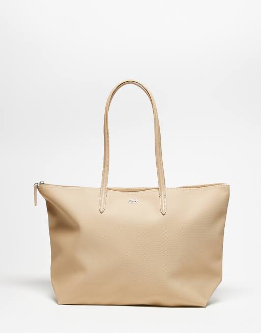 Lacoste - Borsa shopping da spalla beige con logo piccolo