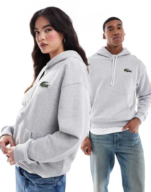 Lacoste - Felpa con cappuccio unisex grigio mélange con logo