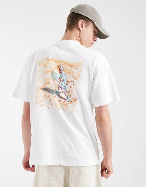 Lacoste - T-shirt bianca con stampa dipinto sul retro