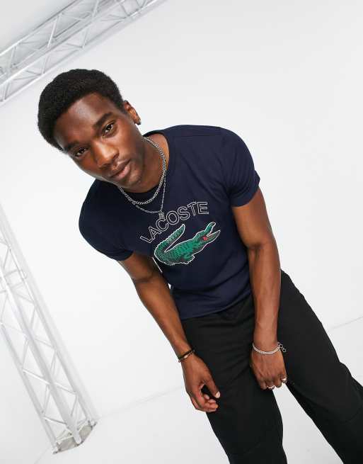 Lacoste - T-shirt blu navy con logo grande e coccodrillo