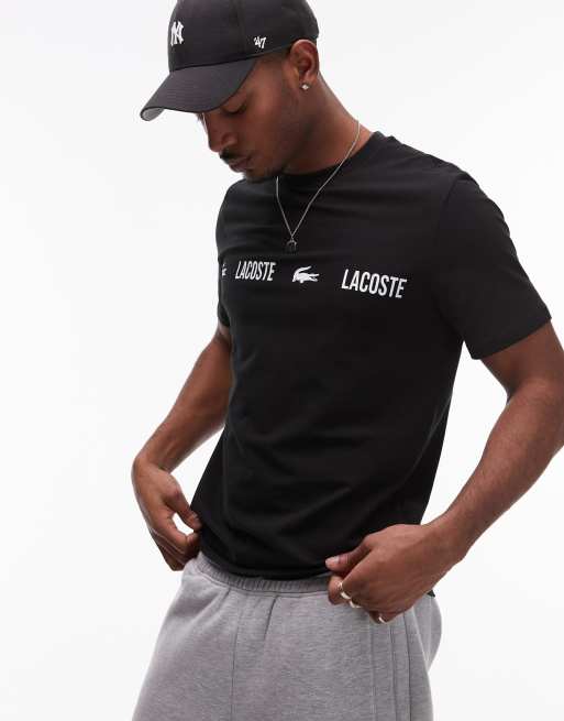 Lacoste - T-shirt da casa nera con riga del logo