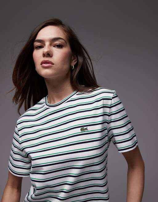 Lacoste - T-shirt oversize a righe orizzontali verdi, nere e bianche