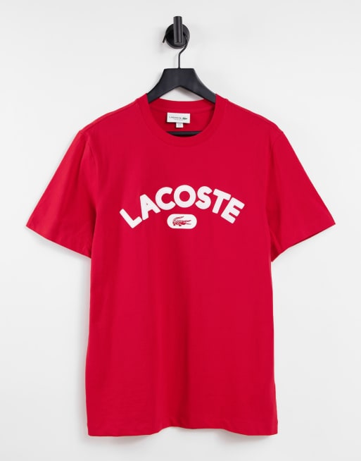 Lacoste - T-shirt rossa con logo grande arcuato