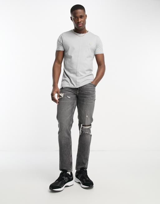Le Breve - T-shirt grigio chiaro squadrata divisa con cuciture