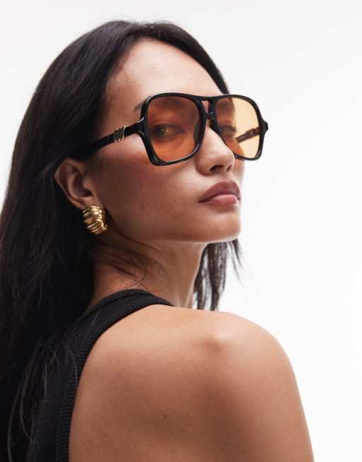 Le Specs - Fortune Teller - Occhiali da sole aviatore oversize neri con lenti ambra