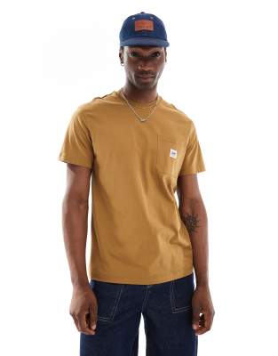 Lee - T-shirt comoda color cuoio con tasca e logo