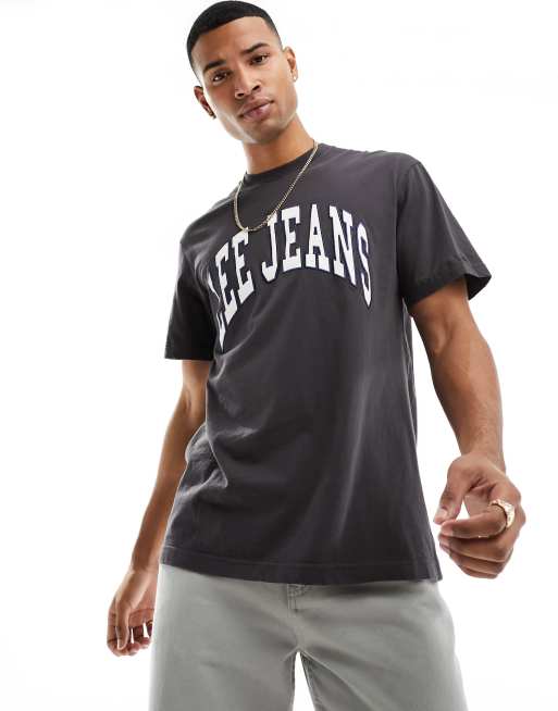Lee - T-shirt comoda nero slavato con logo grande stile college
