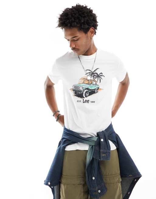 Lee - T-shirt écru con stampa del logo con Jeep