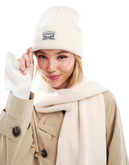 Levi's - Berretto in maglia color crema con etichetta del logo
