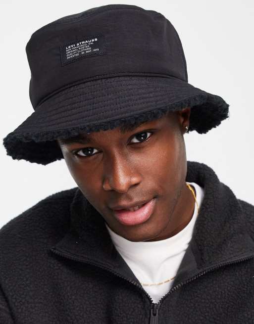 Levi's - Cappello da pescatore nero double-face con fodera in pile