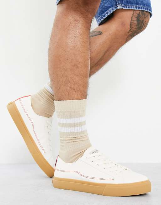 Levi's - Deacon - Sneakers color crema con linguetta rossa con logo e suola in gomma