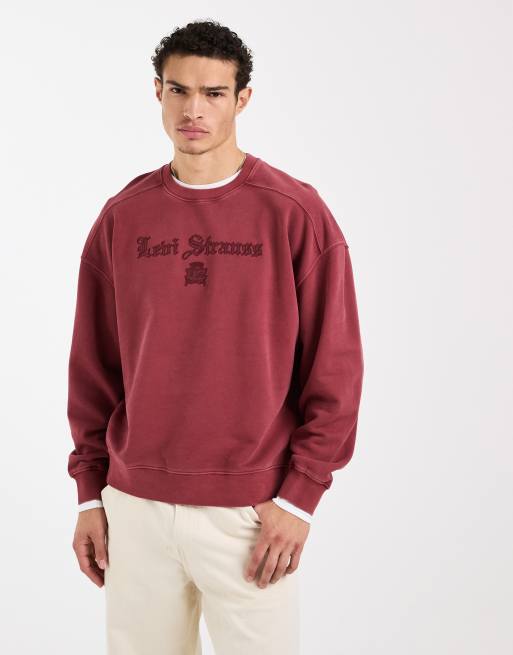 Levi's - Felpa girocollo squadrata color rosso scuro con logo ricamato