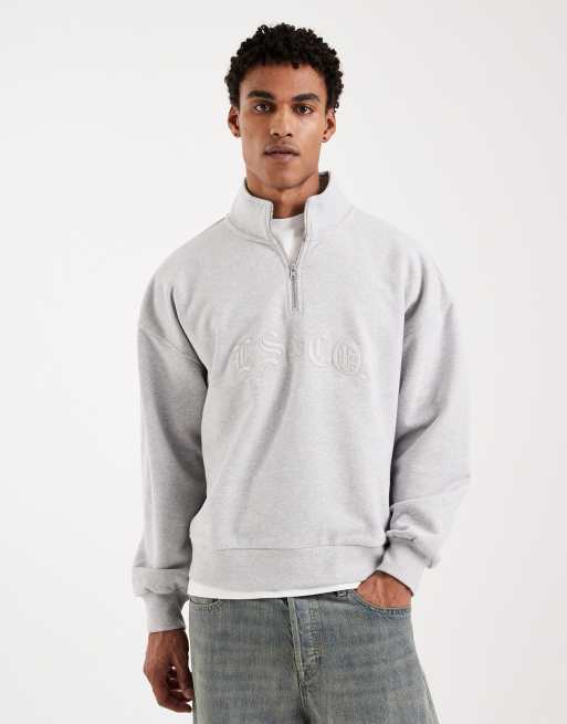 Levi's - Felpa grigio chiaro con ricamo tono su tono e zip corta