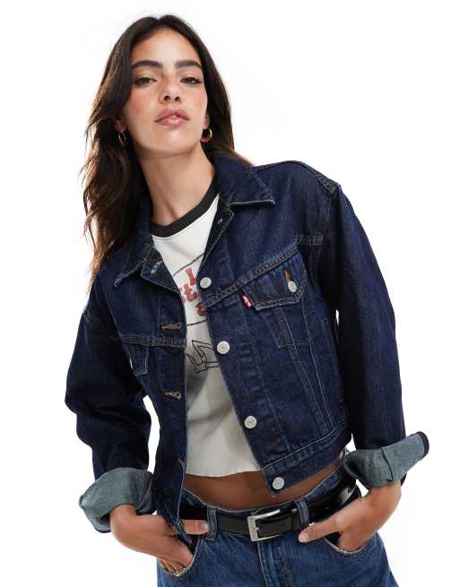 Levi's - Giacca di jeans stile trucker anni '90 blu scuro corta e stretta