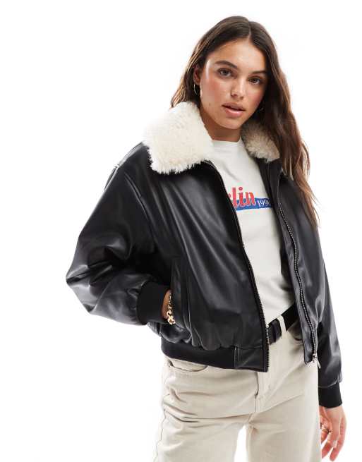 Levi's - Harper - Giacca bomber in pelle sintetica nera vestibilità comoda con colletto in pile