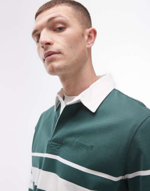 Levi's - Polo da rugby verde con righe sul petto e logo