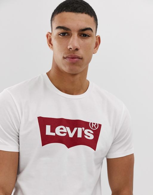 Levi's - T-shirt bianca con logo batwing