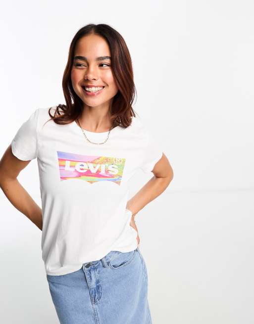 Levi's - T-shirt bianca con logo marmorizzato