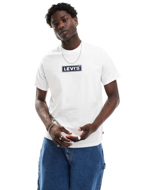 Levi's - T-shirt comoda bianca con riquadro del logo imbottito al centro