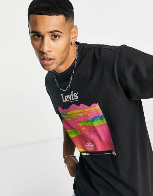 Levi's - T-shirt nera con stampa fluo sul petto