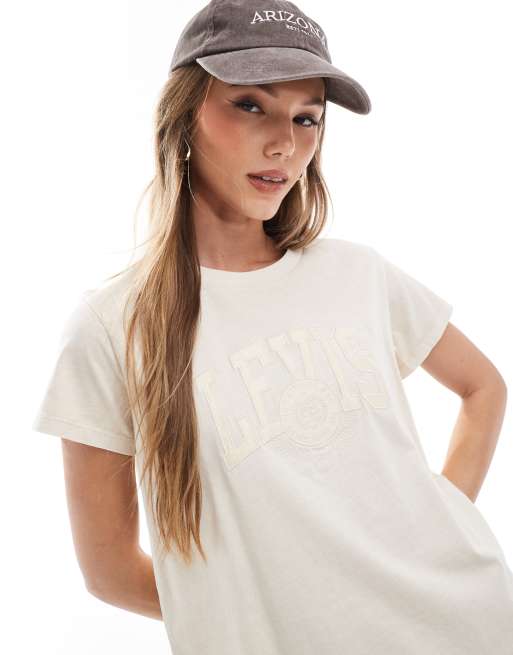 Levi's - T-shirt squadrata beige stile college con logo applicato tono su tono