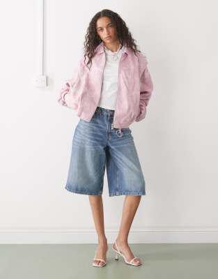Esclusiva Lioness - Vista - Bomber in pelle sintetica rosa con cuciture a contrasto